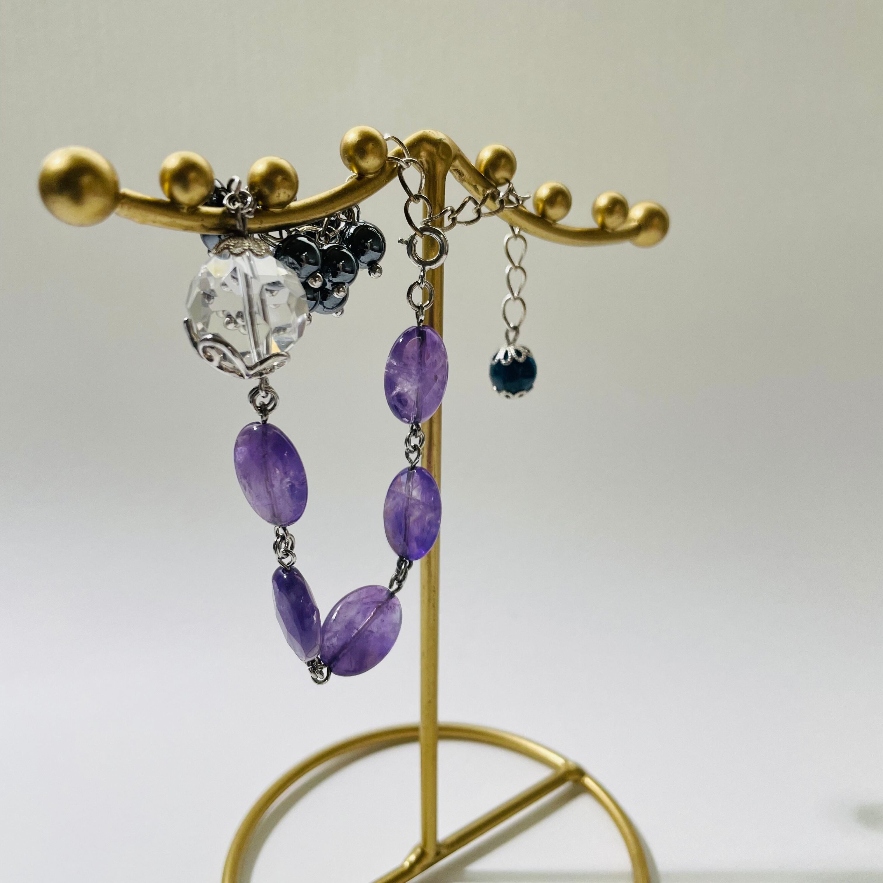 アメジストの優しい紫と葡萄のように揺れるヘマタイトが印象的なブレスレット。
